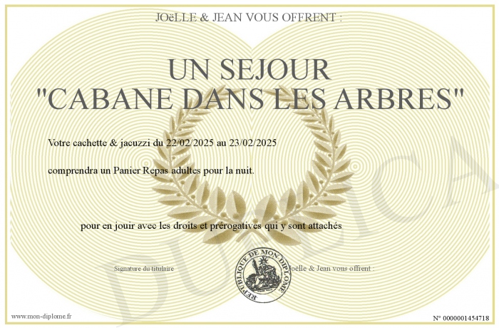 Envoyez par email votre Un séjour -cabane dans les arbres- personalisé