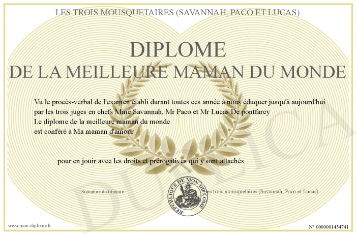 Envoyez par email votre diplôme de la meilleure maman du monde personalisé