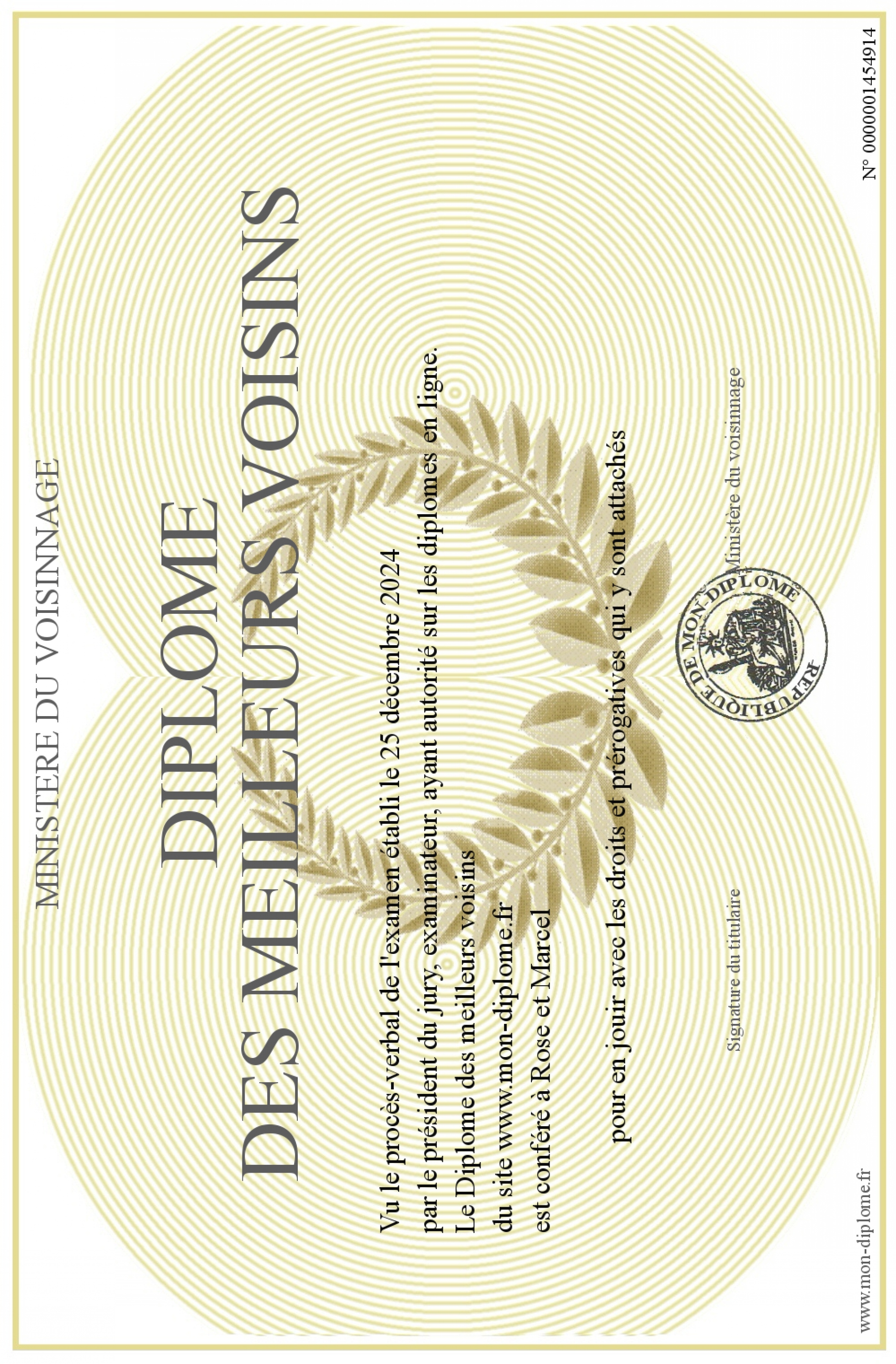 Envoyez par email votre Diplôme des meilleurs voisins personalisé