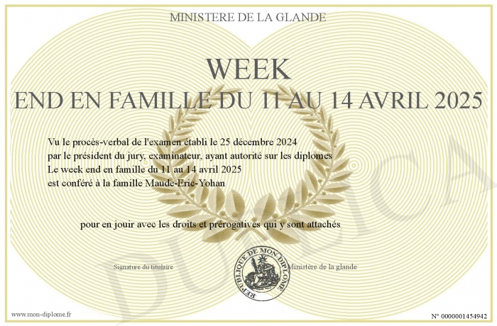 Envoyez par email votre week end en famille du 11 au 14 avril 2025 personalisé