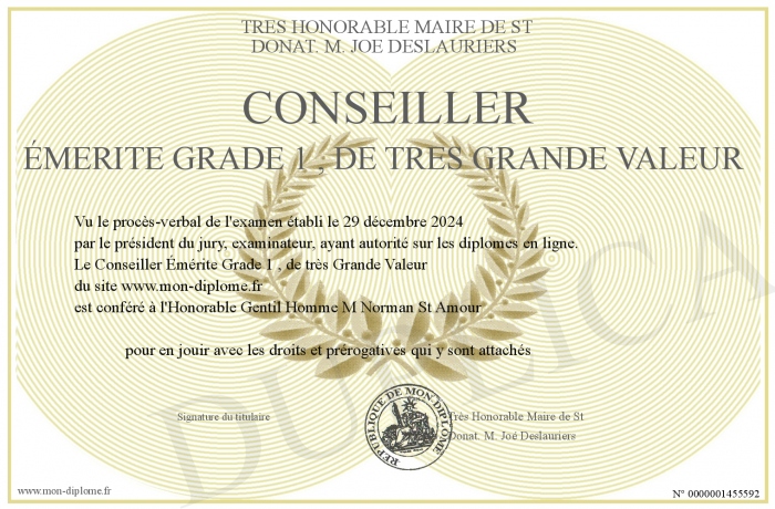 Envoyez par email votre Conseiller Émérite Grade 1 , de très Grande Valeur personalisé