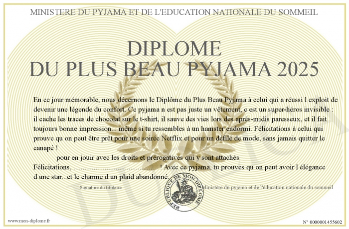 Envoyez par email votre Diplôme du plus beau pyjama 2025 personalisé