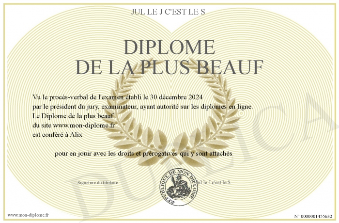 Envoyez par email votre Diplôme de la plus beauf personalisé