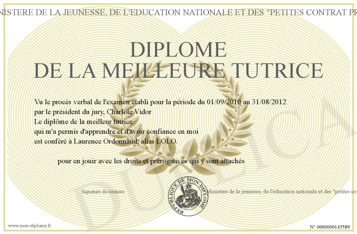 Envoyez par email votre Diplôme de la meilleure tutrice personalisé