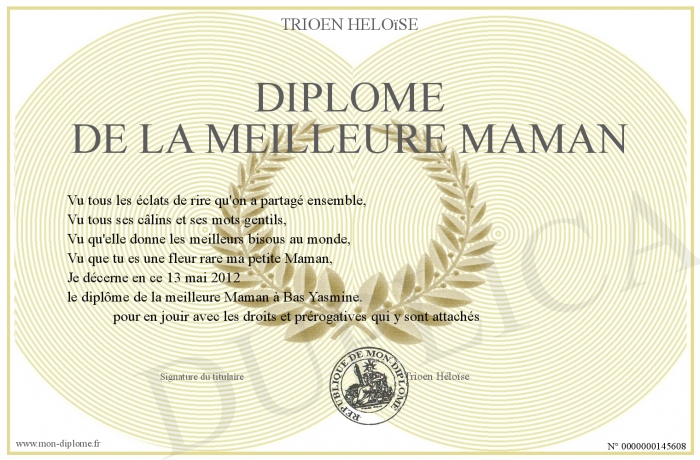 Envoyez par email votre Diplôme de la meilleure maman personalisé