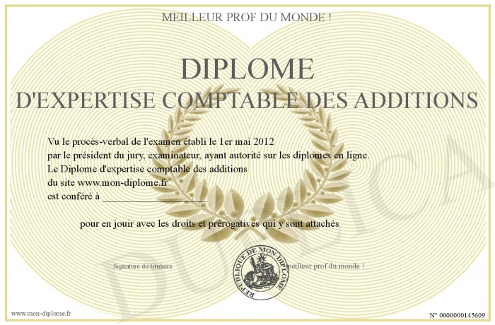 Envoyez par email votre Diplome d'expertise comptable des additions personalisé