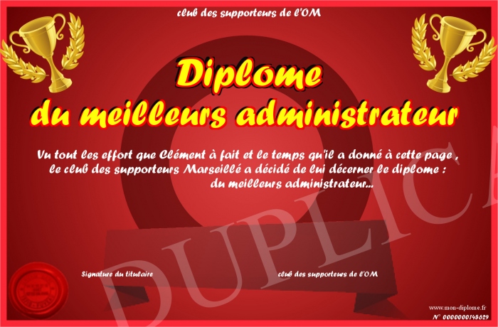 Envoyez par email votre Diplôme du meilleurs administrateur personalisé