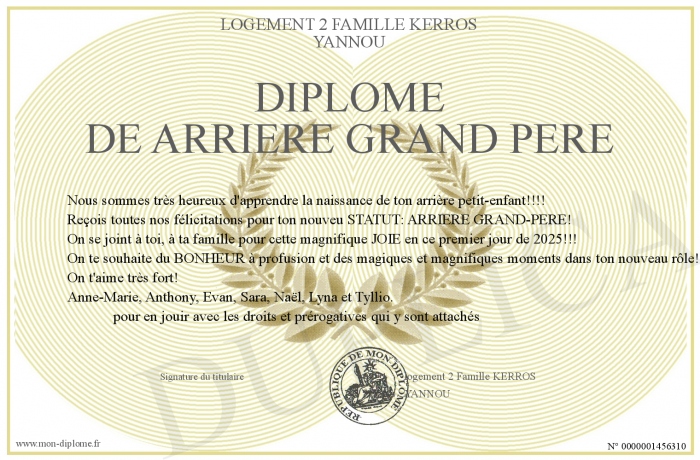 Envoyez par email votre Diplôme de ARRIERE GRAND PERE personalisé