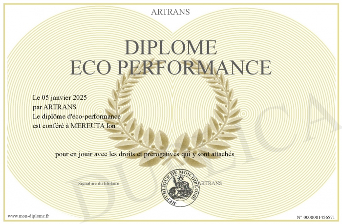 Envoyez par email votre Diplôme ECO PERFORMANCE personalisé