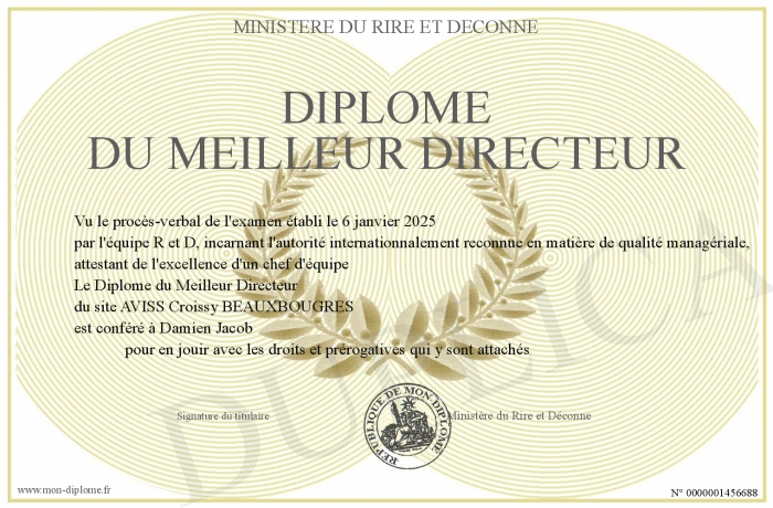 Envoyez par email votre Diplôme du Meilleur Directeur personalisé
