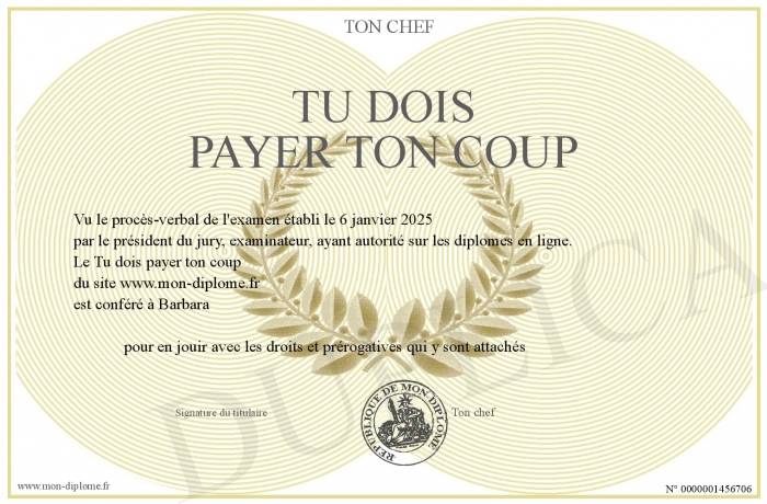 Envoyez par email votre Tu dois payer ton coup personalisé