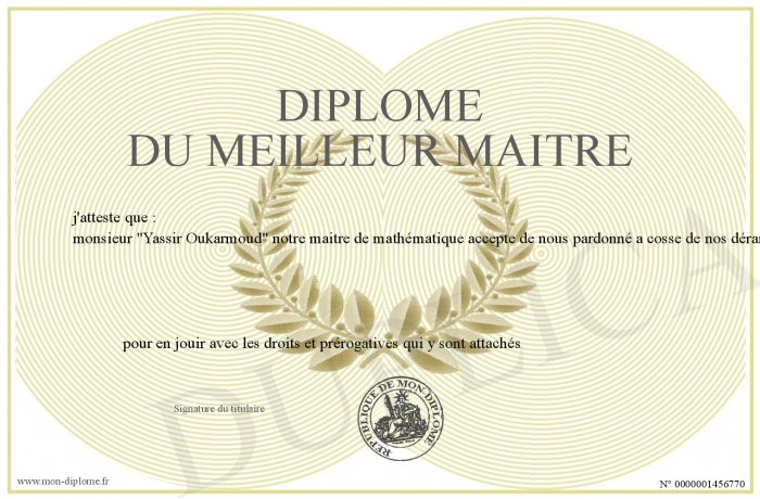 Envoyez par email votre diplome du meilleur maitre personalisé