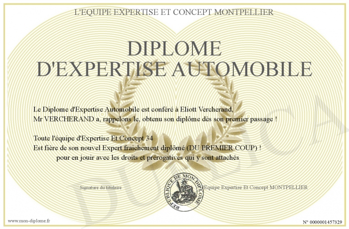 Envoyez par email votre Diplôme d'Expertise Automobile personalisé