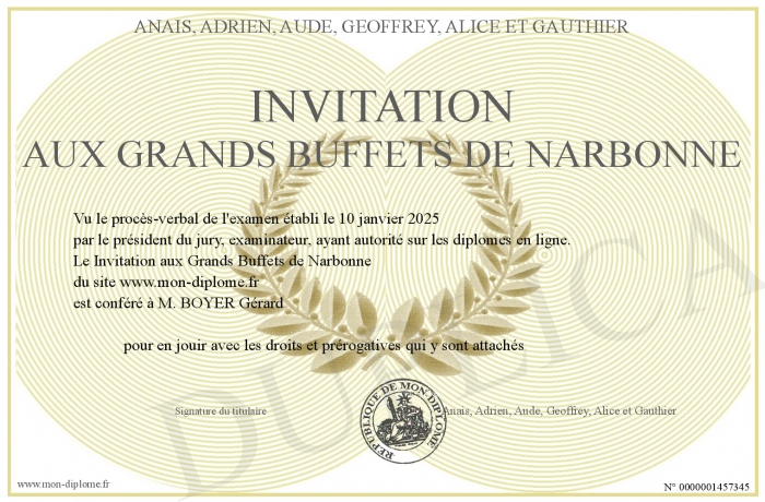 Envoyez par email votre Invitation aux Grands Buffets de Narbonne personalisé