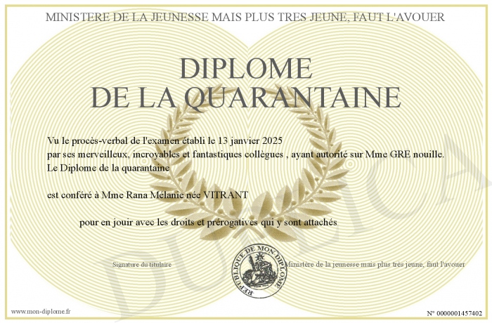 Envoyez par email votre Diplôme de la quarantaine personalisé