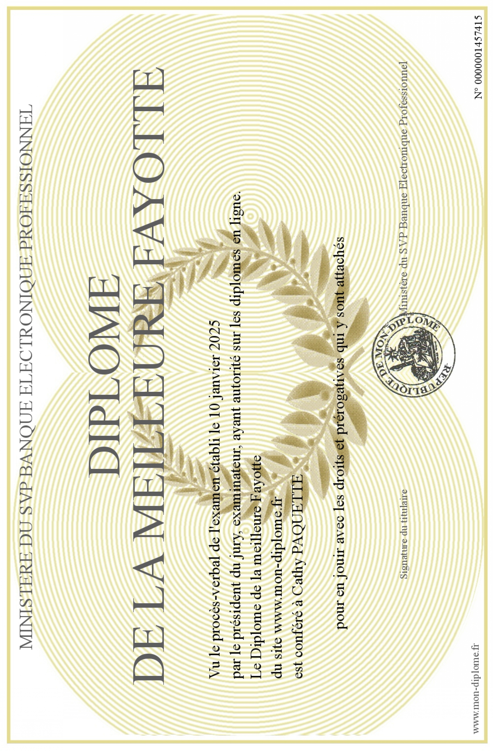Envoyez par email votre Diplôme de la meilleure Fayotte personalisé