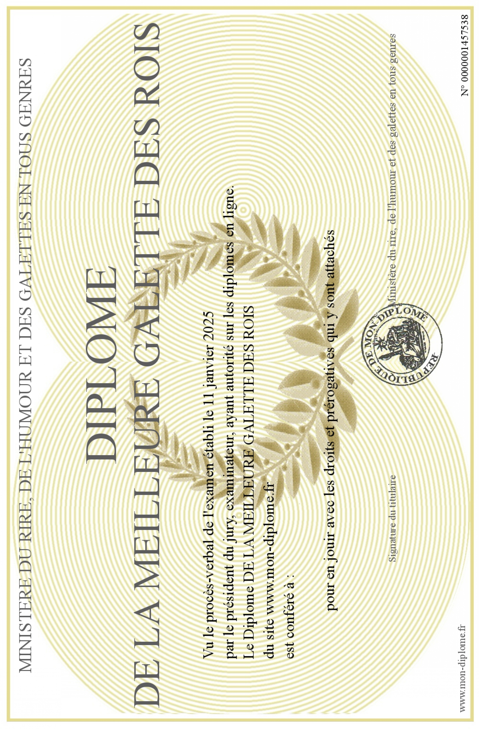 Envoyez par email votre Diplôme DE LA MEILLEURE GALETTE DES ROIS personalisé
