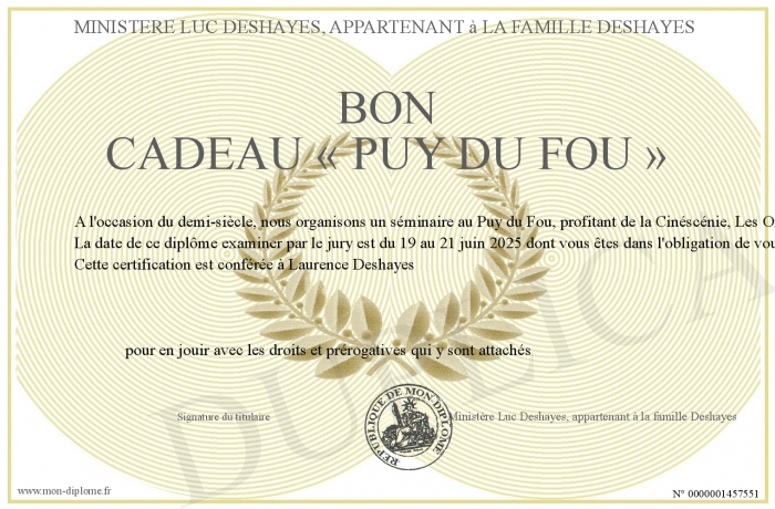 Envoyez par email votre Bon cadeau « Puy du Fou » personalisé