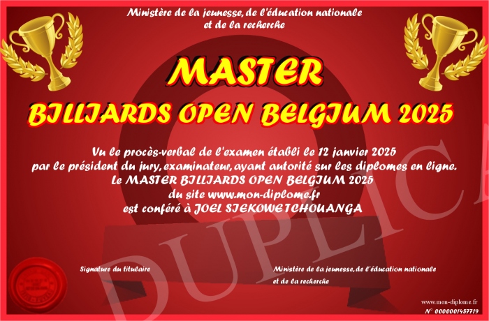 Envoyez par email votre MASTER BILLIARDS OPEN BELGIUM 2025 personalisé