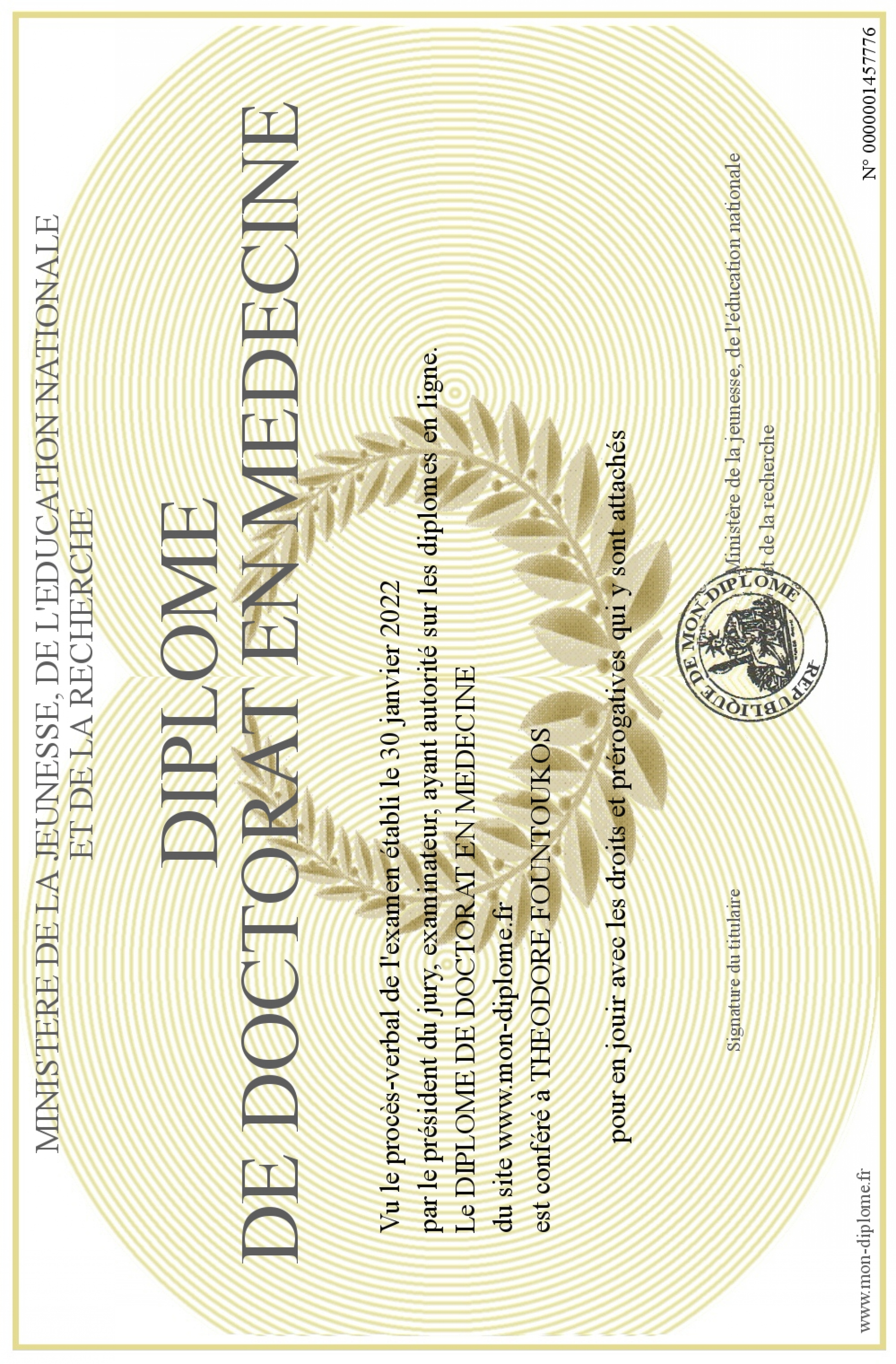 Envoyez par email votre DIPLOME DE DOCTORAT EN MEDECINE personalisé