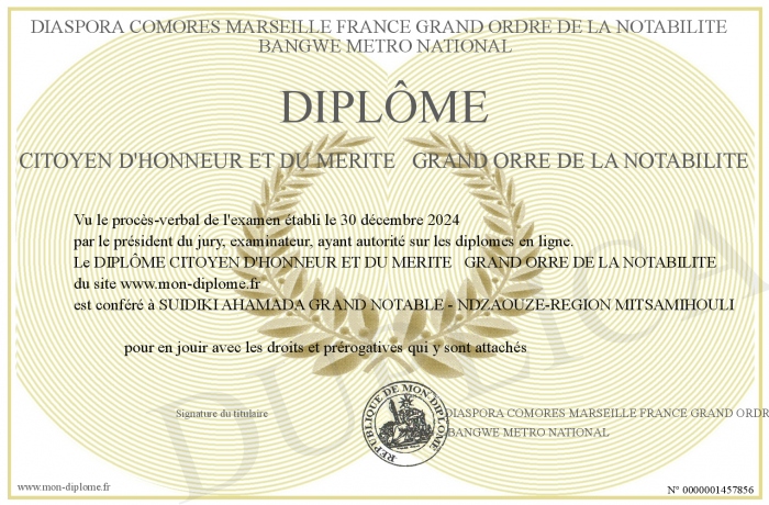 envoyé par le DIASPORA COMORES MARSEILLE FRANCE GRAND ORDRE DE LA NOTABILITE - BANGWE METRO NATIONAL !