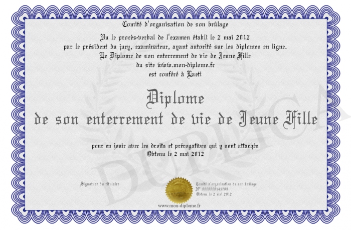 Envoyez par email votre Diplôme de son enterrement de vie de Jeune Fille personalisé
