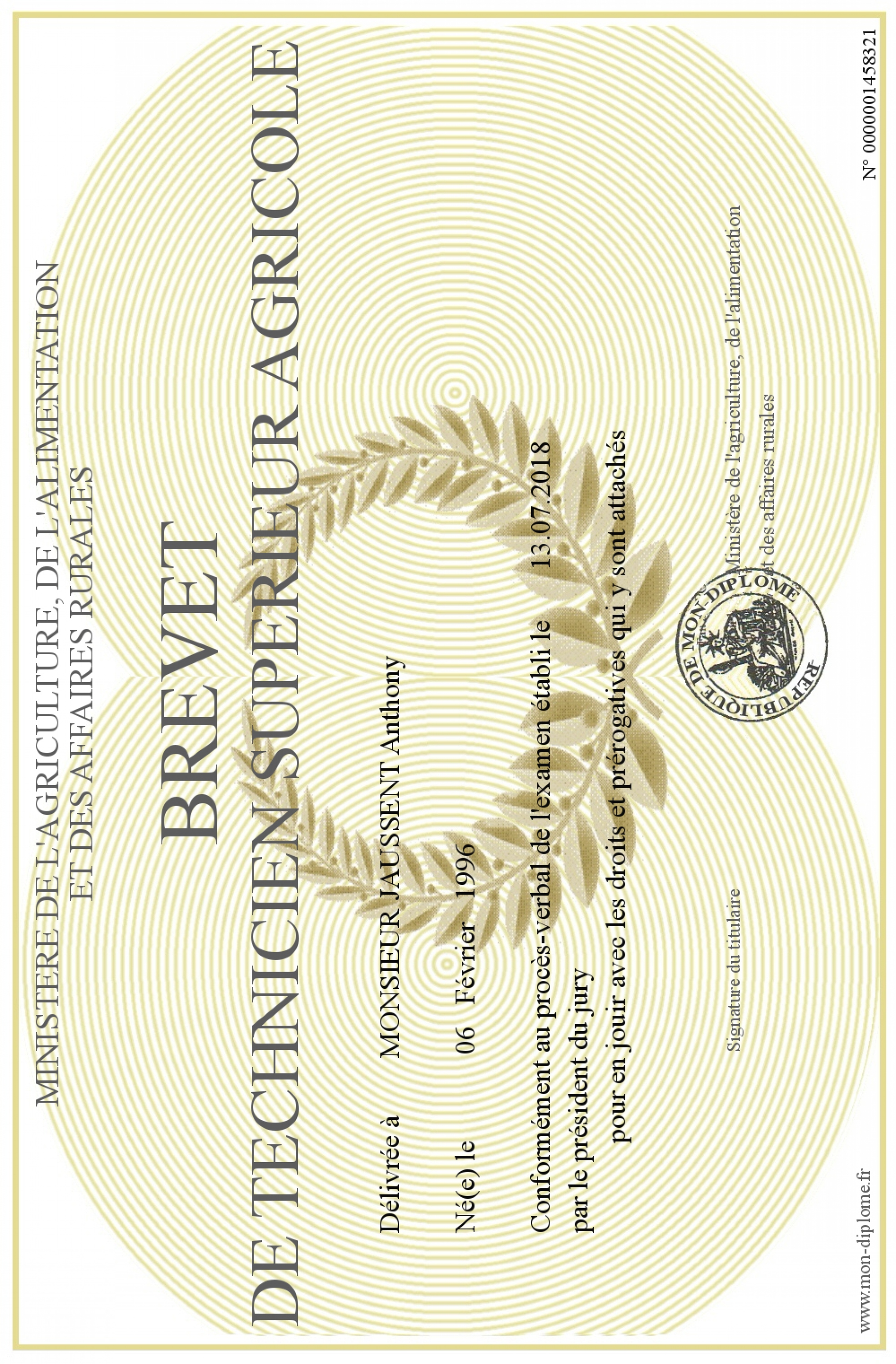 Envoyez par email votre Brevet de technicien supérieur agricole personalisé