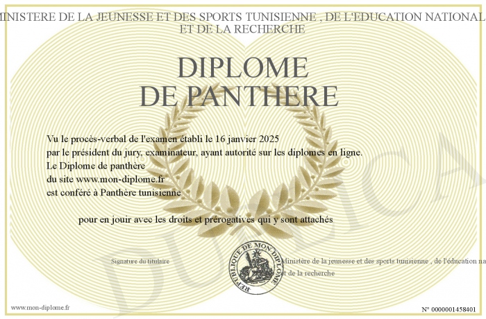 Envoyez par email votre Diplôme de panthère personalisé