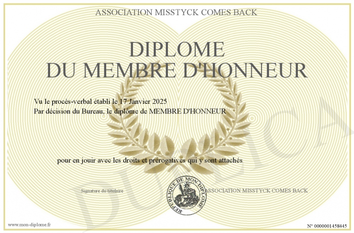Envoyez par email votre Diplome du membre d'honneur personalisé