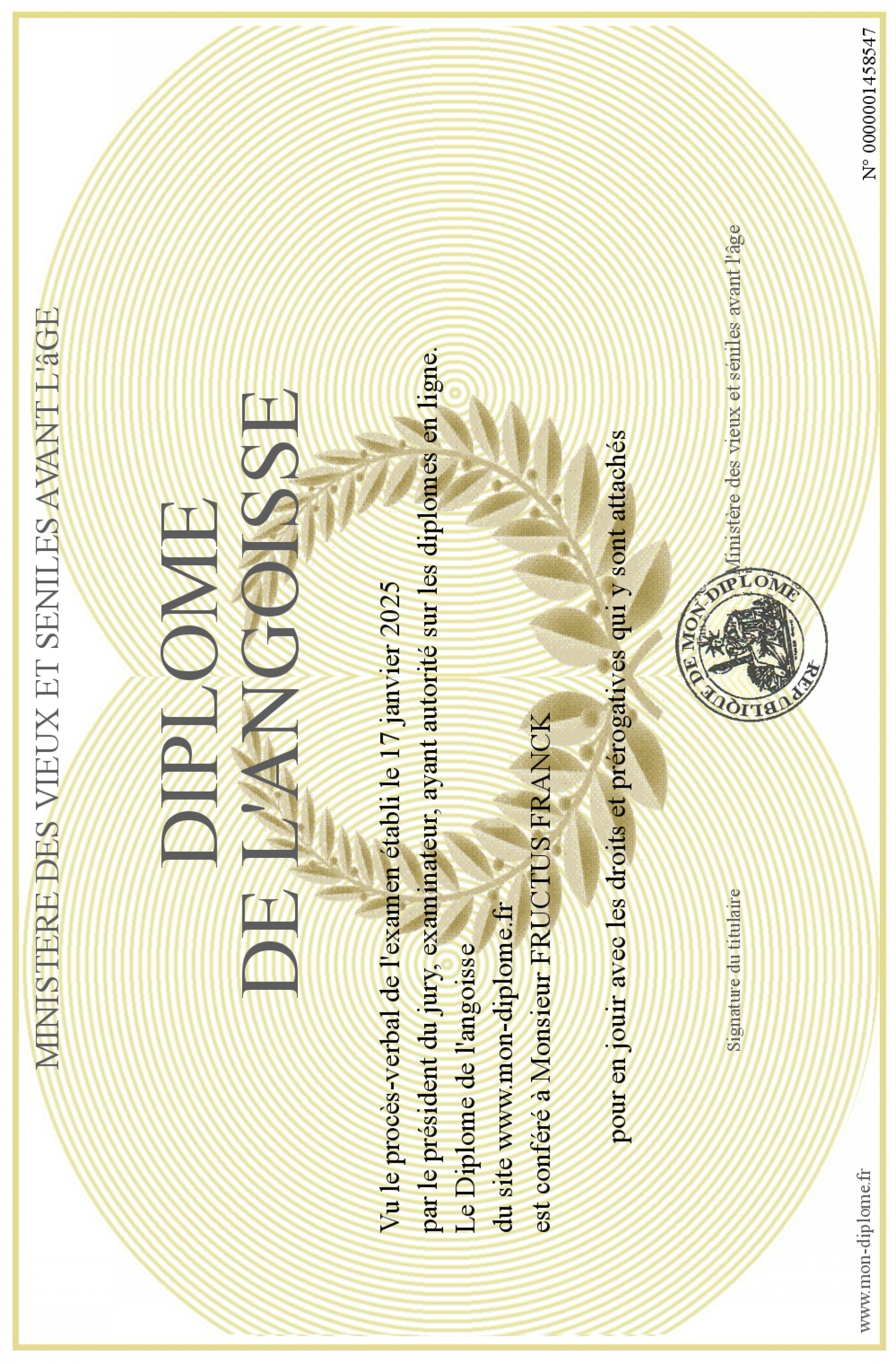 Envoyez par email votre Diplôme de l'angoisse personalisé