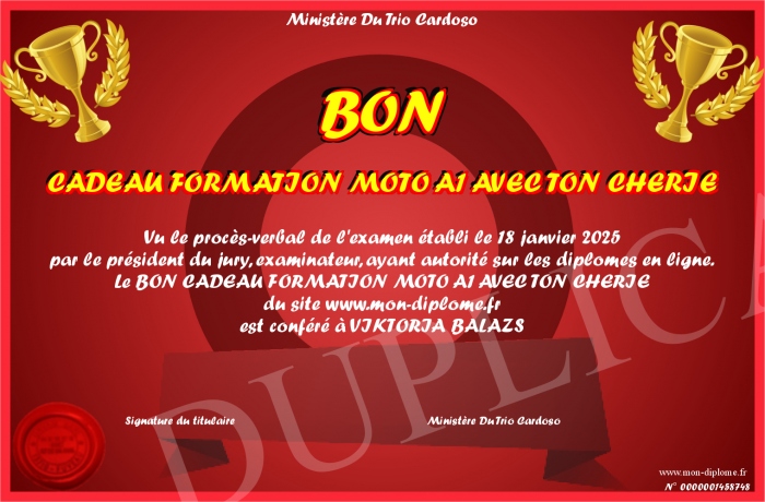 Envoyez par email votre BON CADEAU FORMATION MOTO A1 AVEC TON CHERIE personalisé