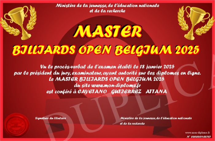 Envoyez par email votre MASTER BILLIARDS OPEN BELGIUM 2025 personalisé