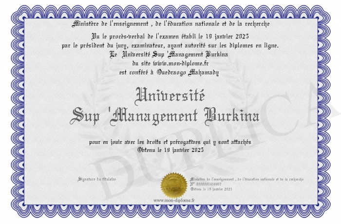 Envoyez par email votre Université Sup 'Management Burkina personalisé