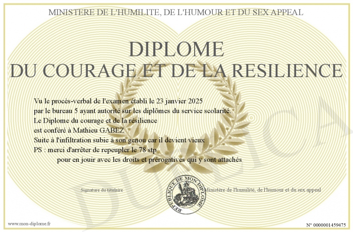 Envoyez par email votre Diplôme du courage et de la résilience personalisé