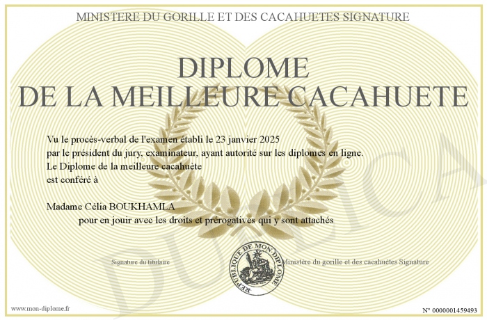 Envoyez par email votre Diplôme de la meilleure cacahuète personalisé