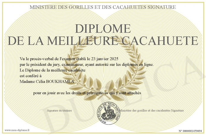 Envoyez par email votre Diplôme de la meilleure cacahuète personalisé