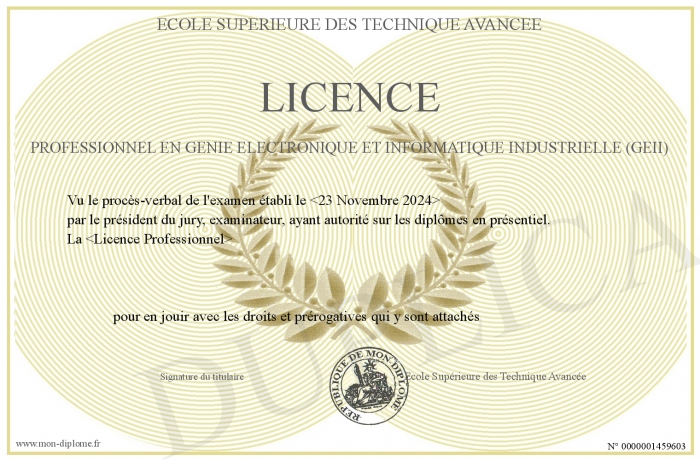 Envoyez par email votre licence professionnel en Génie Electronique et Informatique Industrielle (GEII) personalisé