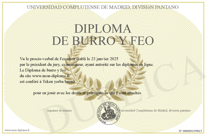 Envoyez par email votre Diploma de burro y feo personalisé
