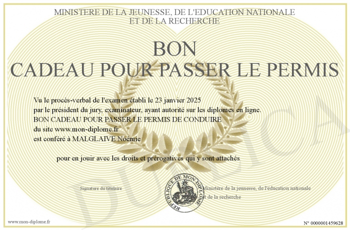 Envoyez par email votre BON CADEAU POUR PASSER LE PERMIS personalisé