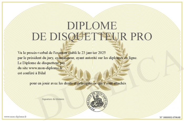 Envoyez par email votre Diplôme de disquetteur pro personalisé
