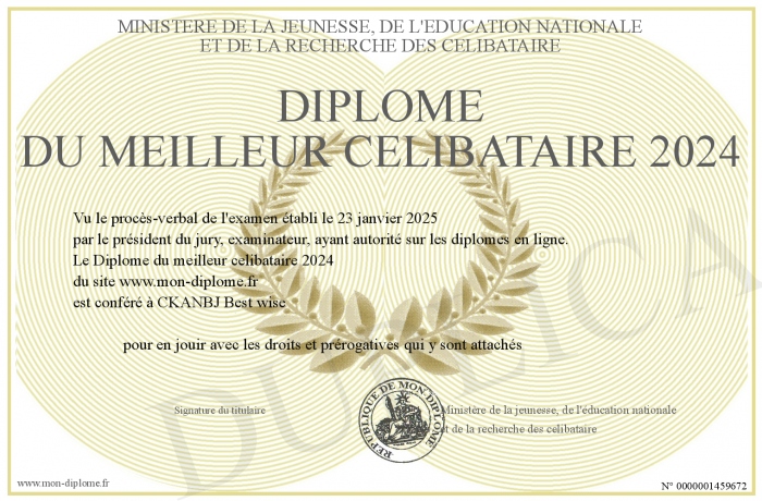 Envoyez par email votre Diplôme du meilleur celibataire 2024 personalisé