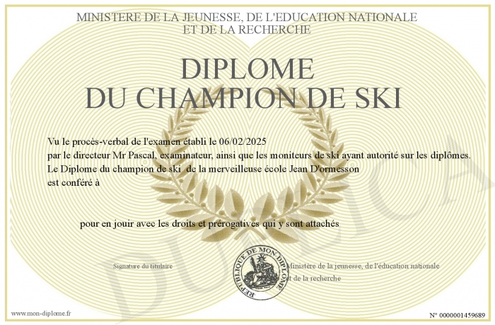 Envoyez par email votre Diplôme du champion de ski personalisé