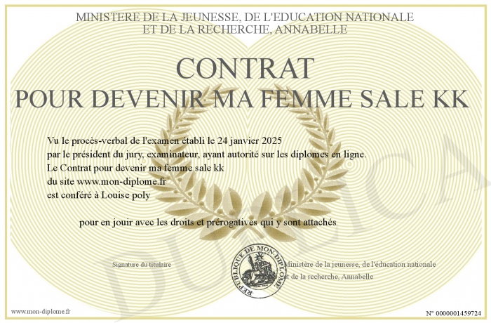 Envoyez par email votre Contrat pour devenir ma femme sale kk personalisé
