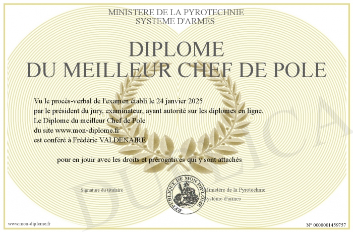 Envoyez par email votre Diplôme du meilleur Chef de Pôle personalisé
