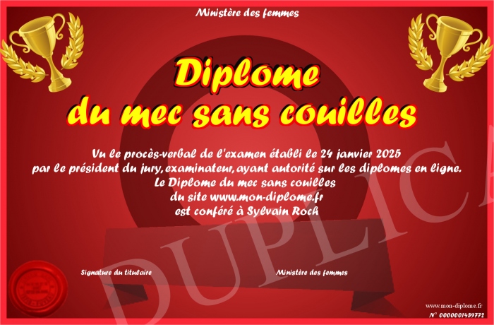 Envoyez par email votre Diplôme du mec sans couilles personalisé