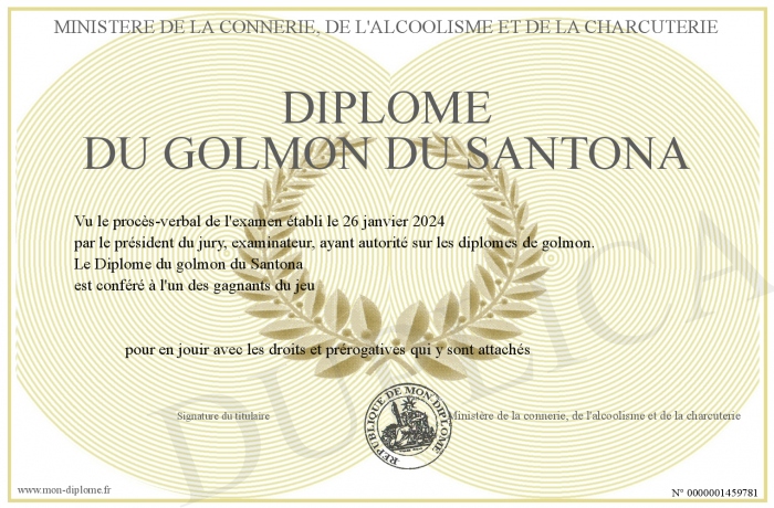 Envoyez par email votre Diplôme du golmon du Santona personalisé