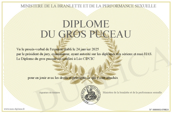 Envoyez par email votre Diplôme du gros puceau personalisé