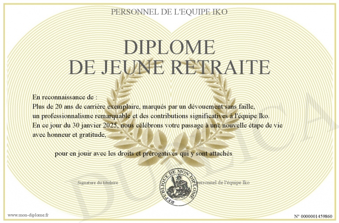 Envoyez par email votre Diplôme de jeune retraité personalisé