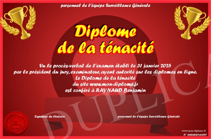 Envoyez par email votre Diplôme de la ténacité personalisé