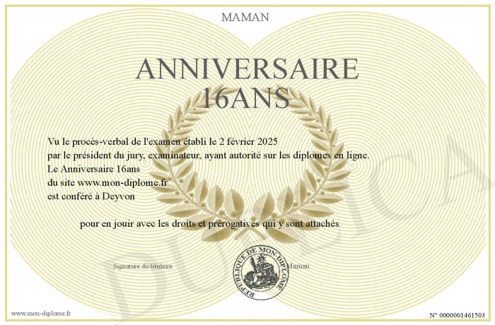 Envoyez par email votre Anniversaire 16ans personalisé